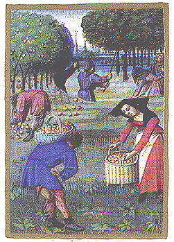 10. Gathering apples. Le Rustican, Pierre de Crescens. Flemish, early 16th century.
