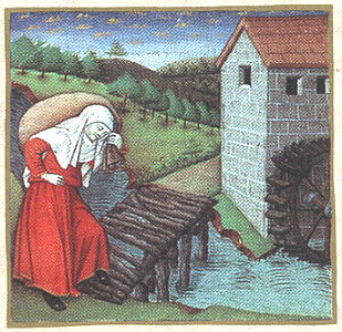 12. Carrying a sack of wheat to the mill. Le mortifiement de vaine plaisance, Rene I d'Anjou. French, 15th century.