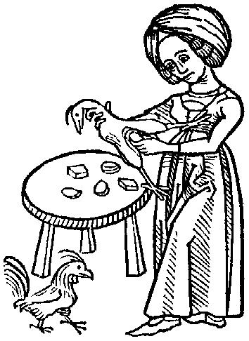32. Stuffing a hen. From Medieval Life Illustrations.