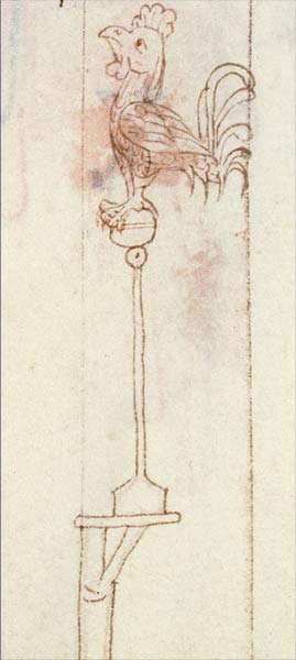 42. A Rooster. Pen-and-ink drawing from Troyes 145, fol. 12.