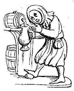 11. Tapping a keg; drawing based on a Medieval misericord wood carving.