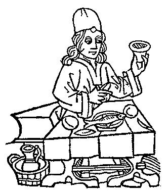 27. A fish dinner. From Medieval Life Illustrations.