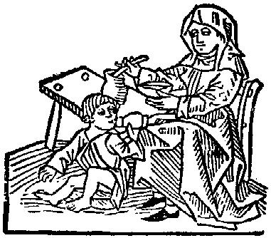 38. Nursemaid feeding a child. From Medieval Life Illustrations.