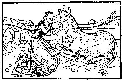 2. A bull and a maiden; from the Defensorium Virginitatis Mariae, 1471.