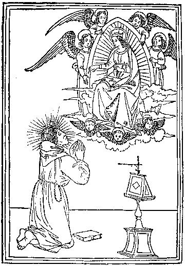 24. The Virgin adored by the Author, from Jacopone da Todi, Laude, Florence, 1490.