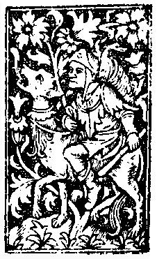 7. Huntsman riding a mythical beast which is part lion and part deer; detail of a page from Horae, Paris (Pigouchet for Vostre) 1496/97.