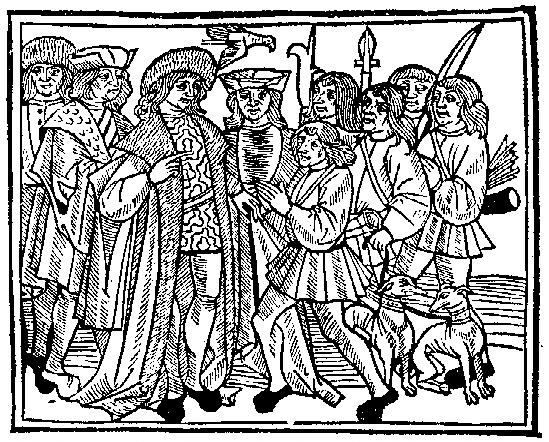 27. A gentleman and his retainers; from the Book of St. Albans, Westminster 1496.