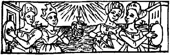 46. Four female musicians; detail of a page from Officium B. V. Mariae, Venice, 1493.