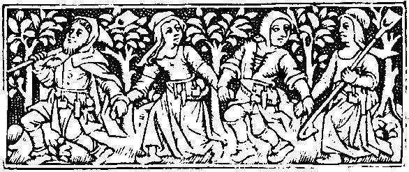 52. Peasants frolicking; detail of a page from Horae, Paris, 1506.