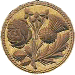 (The picture above is of the mold, and not the cookie itself) Size: L (3 1/4" diameter). Shape: circle. Price: 1 - $1.00; 6 - $5.00; 12 - $10.00; 50 - $40.00; 100 - $60.00. S & H: $10.00 for every 50 cookies. Notes: This design was originally used as a butter mold, but makes excellent Springerle as well. The rose is incredibly intricate and beautiful, with deep, realistic petals, and the thistle is strikingly rich in composure. The carver of this mold was an inspired master - this is a true beauty. (Please contact us before placing any order.) Pay by PayPal! Click the "Buy Now" Link: We accept:
