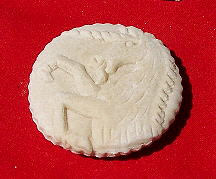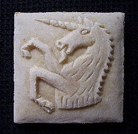 (The picture above is of the mold, and not the cookie itself) Size: M (square - 2 3/4" x 2 3/4"; round - 2 3/8" diameter). Shape: square or round. Price: 1 - $.75; 6 - $4.50; 12 - $9.00; 50 - $30.00; 100 - $50.00. S & H: $9.00 for every 100 cookies. ![]() Notes: This was our first design when we started making cookies back in 2002. It's a great pattern, suitable for a lot of occasions - its even been used at weddings! In 2002 we presented it at the Alabama Renaissance Fair Feast; over 200 were done in the round cut and painted with edible gold. They were featured in a presentation involving a chest full of "golden unicorns." ![]() Here is the Unicorn done in the round design HOW TO PLACE AN ORDER (Please contact us before placing any order.) Pay by PayPal! Click the "Buy Now" Link: