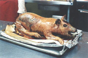 Pourcelet farci PERIOD: France, 14th century | SOURCE: Le Viandier de Taillevent | CLASS: Authentic DESCRIPTION: Roast pig stuffed with pork, egg yolks, Brie cheese, & chestnuts