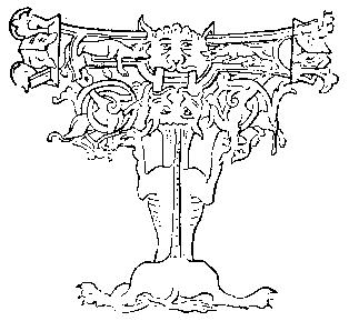 12. Demonic grotesque initial T. French, 12th century. Drawing after a calligraphic manuscript.