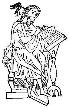 15. An evil spirit as a black bird whispering into the ear of a magician. From Hortus Delicarum, 11th century. Drawing after a manuscript illustration.