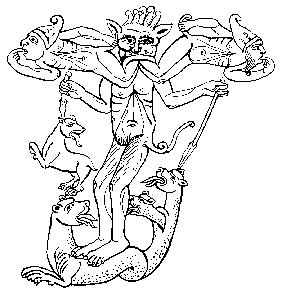 29. Demonic grotesque initial T. Rouleau mortuaire de Saint Vital, 12th century. Drawing after a calligraphic manuscript.
