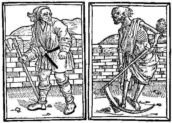 57. The countryman and Death. From the Dance of Death by the Master of the Lübeck Bible, Lübeck, 1489.