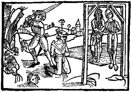 68. The terrible fate of dice-players. From a pamphlet How the Die Was Invented, attributed to Albrecht Dürer, printed by Conrad Kacherofen, Leipzig, 1487.
