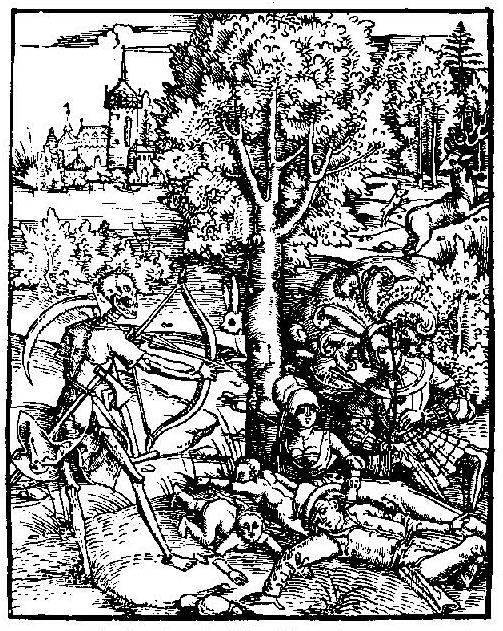 84. Death hunting the hunters. From Geiler von Kaisersperg's Sermones, De arbore humana, printed by Johann Gruninger, Strassburg, 1514.