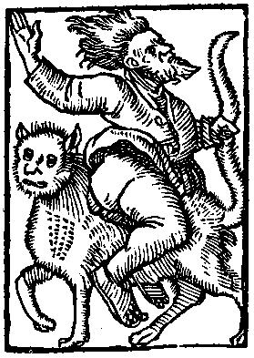 107. Wizard riding to the sabbath. From Ulrich Molitor's Hexen Meysterey, 1545.