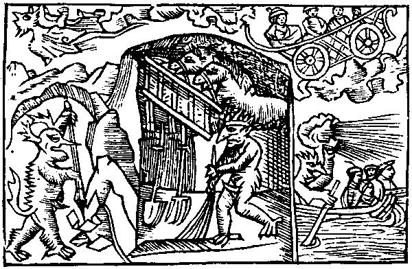 135. Lower demons carrying out minor chores for their human masters. From Olaus Magnus' Historia de gentibus Septentrionalibus, Rome, 1555.