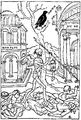137. The triumph of Death. From Geoffrey Tory's Horae in taudem beatissime virginis Marie, printed by Simon du Bois, Paris, 1527.