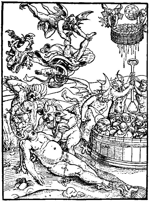 138. The Papal hierarchy as mash in the Devil's vineyard. From a German anti-Papist broadside, late sixteenth century.