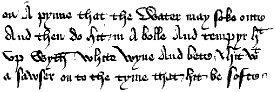 Transcription of original receipt: To make Creme of Almoundes Blanche almounds kepe them As ye may them temper up to A thycke mylke with fayre water streyne hit and put hit in A pott and set hit on the fyre stere hit well when hit begynnys to ryse up take hit of yf thow have moche do ther to A dyschfull of VynAgyr yf thou have but a litell do the lesse hele (5.1) the pot let hit stonde A whyle. Take a clene cloth holdyn a brode betwene .iiij. folkes streyte & cast the creme þer on with a ladyll as brode as the cloth And rubbe the cloth toward and froward with the egge of the ladyll that þer may woyde the water. Then gather hit to geder in þe myddyl of the cloth bynde the .iiij. Corners to geder and hang on A pynne that the Water may soke onto And then do hit in A bolle And tempyr hit up wyth white wyne And bete hit with a sawser on to the tyme that hit be softe. Modern translation: (5.1) hele - cover; see Austin, p. 132. Modern recipe: |